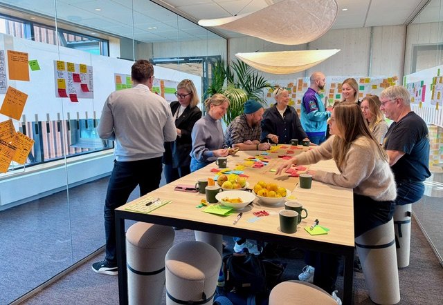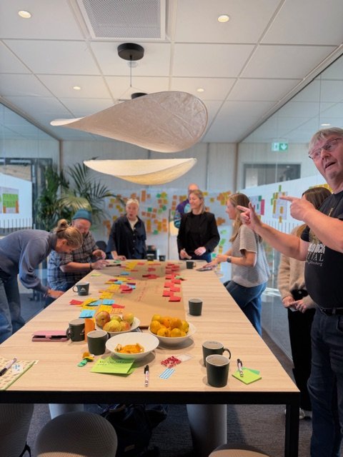Teamet mitt i den veckolånga design sprinten som inledde arbetspaket 2 (september 2025). Från vänster: Patrik Larsen & Helena Maide, Skellefteå kommun, Elin Olsson, Länsstyrelsen Västerbotten, Lars Huring & Ella Jonsson, Driftwind, Enar Nordvik, Angelica Eklund Riechert, Sofia Lundman, Leif Johnsson, Lisa Elveros, Skellefteå kommun.